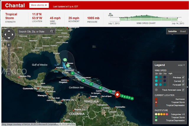 Предыдущий мой пост был о том, что над Доминиканой, за время нашего проживания ( с 2005 по нынешнее время), не прошёл ни один ураган. И вот, пожалуйста, через два дня нас накроет точнёхонько шторм Шанталь...